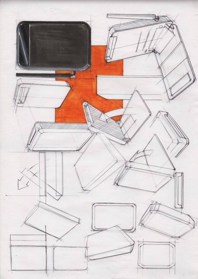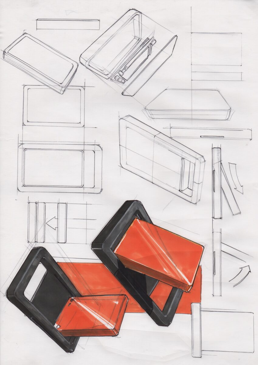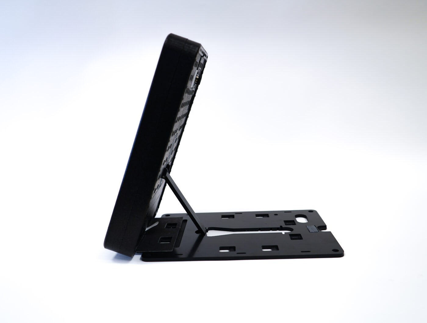 The design approach here was to create a support system that allows the device to be positioned both vertically and horizontally on a wide variety of surfaces.